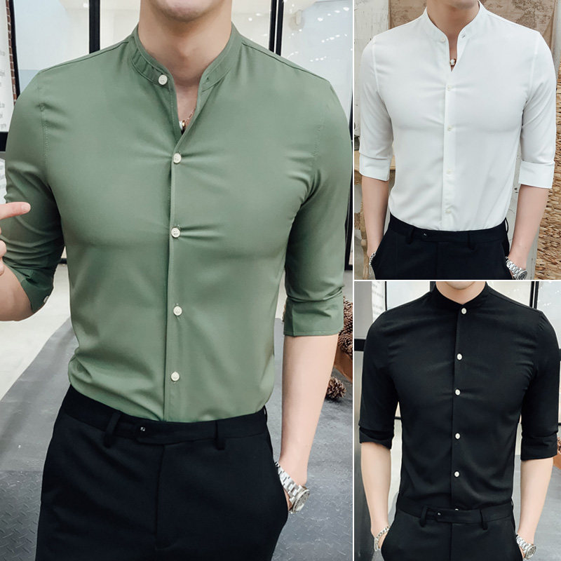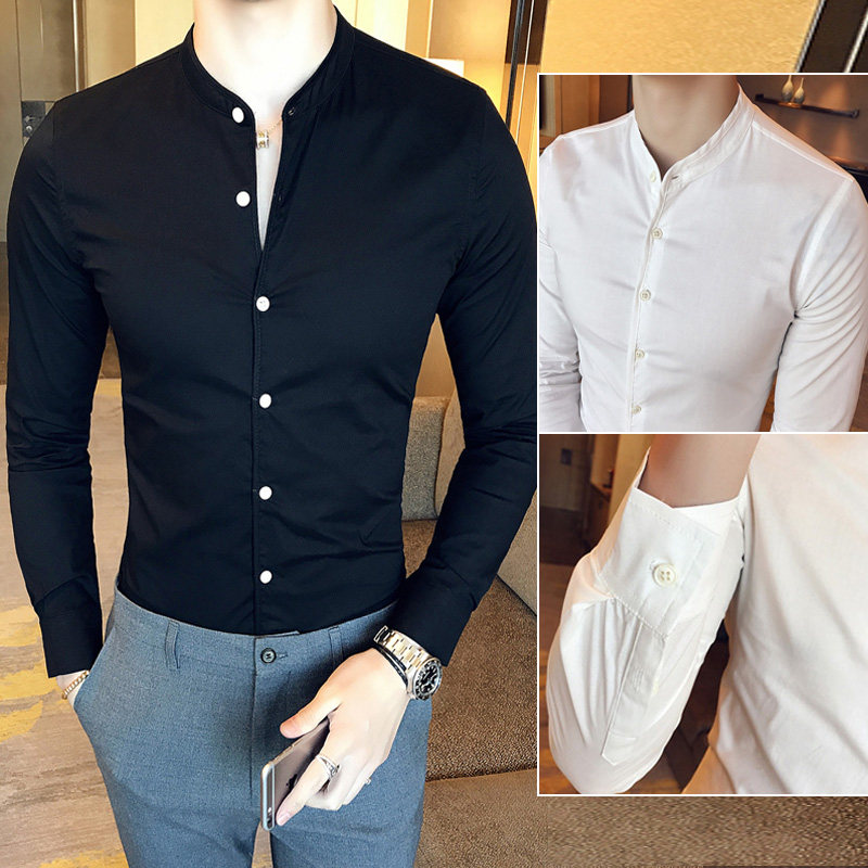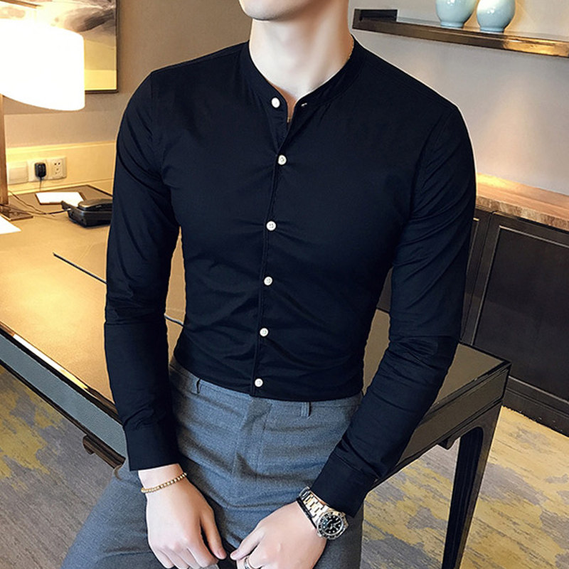 Stand-up collar shirt men's long-sleeved slim-fit spring 2022 new Korean style casual trend handsome fashion high-end shirt