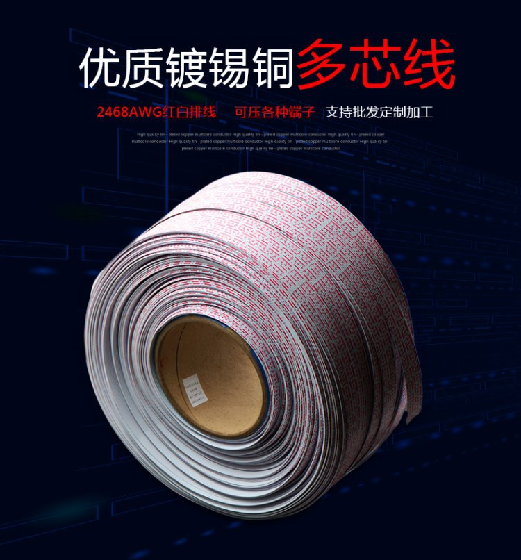 UL2468-26AWG 4P 6P 6P 10P 8P 12P 12P Tinned copper wire Red and white flat cable terminal connecting wire
