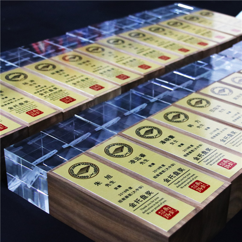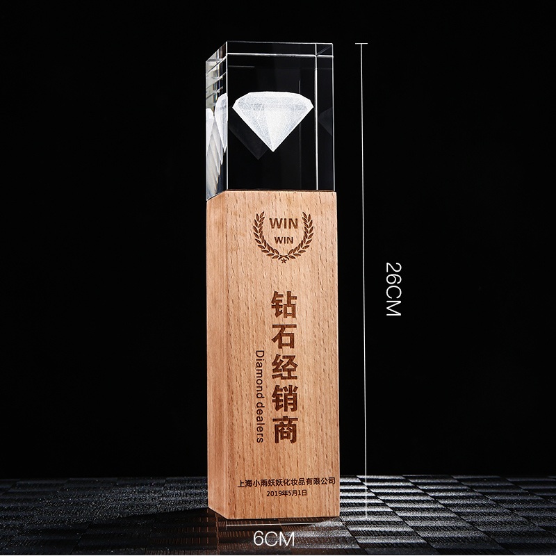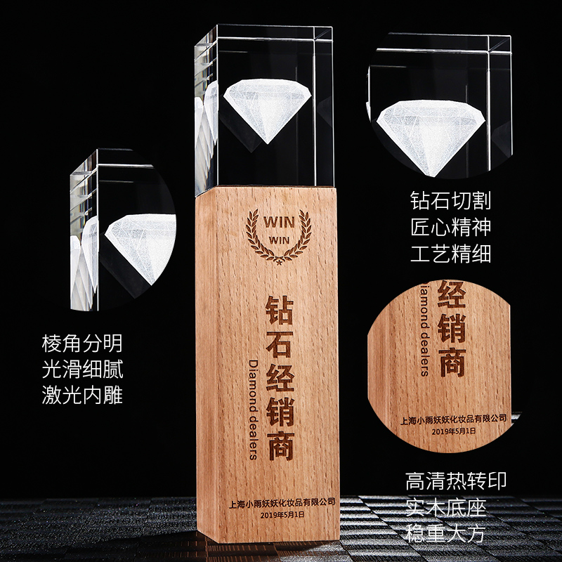 Solid wood crystal trophy custom trophy custom enterprise annual meeting award lettering souvenir business memorabilia internal carving
