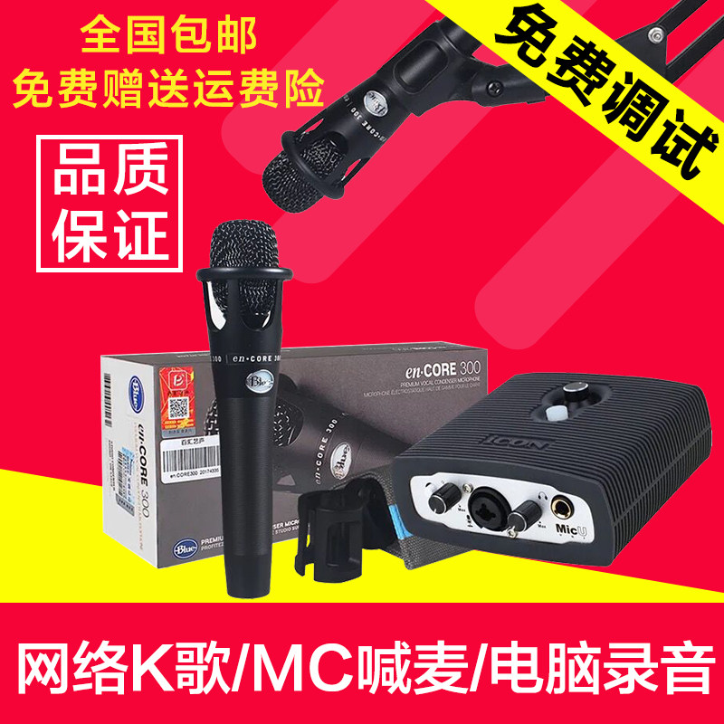 Blue e300 condenser microphone Mobile phone computer live broadcast equipment Full set of k song recording microphone sound card set yy