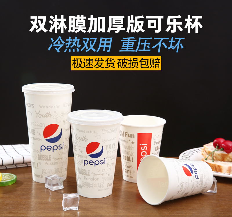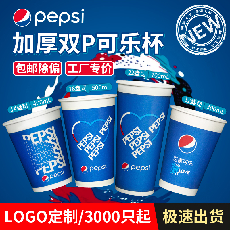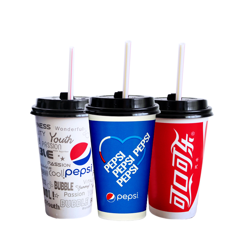 Thickened double-coated cola cup disposable paper cup with lid cold drink cup Coca-Cola Pepsi cup 500 packs