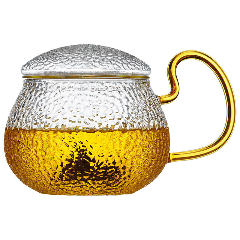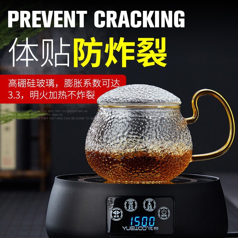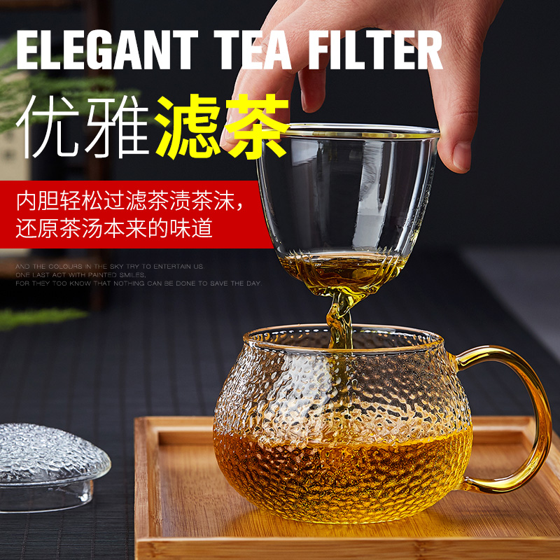 Household hammer pattern glass cup with filter flower tea cup heat-resistant glass cup thickened cup tea water separation bubble cup