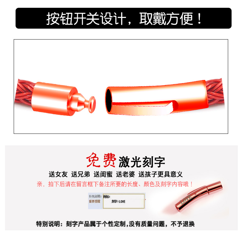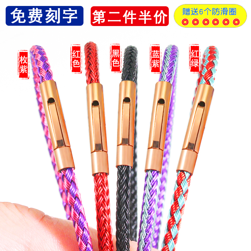 Waterproof steel wire hand rope small holes can be worn 3D hard gold transfer beads to replace leather rope this life year red rope hand rope lovers