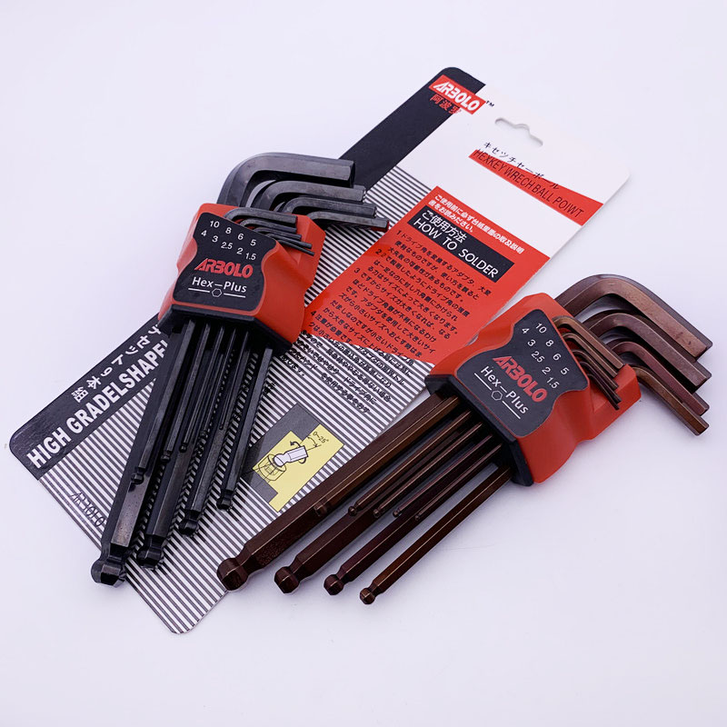 Taiwan Apollo Manual Multifunction Wrench S2 Material 9 Pieces Inner Hexagon Wrench Black Bronze Color Hexagon Wrench