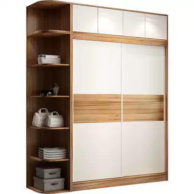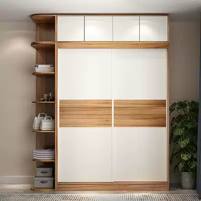 Nordic style wardrobe sliding door Modern simple bedroom wardrobe 2 doors solid wood sliding door cabinet saves space