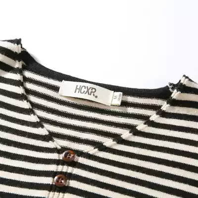 Han Chao Xiren striped sweater female 2021 Autumn New Korean long sleeve V-neck sweater loose pullover top