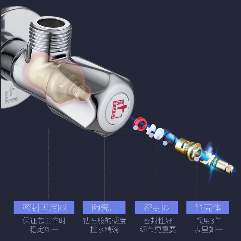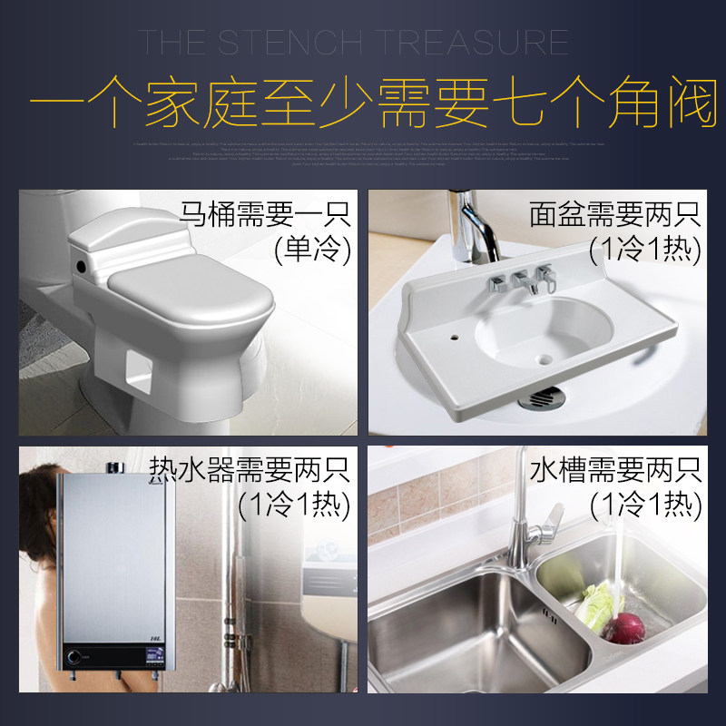 Diving boat angle valve large flow hot and cold water valve switch 4 water-stop valve fine copper water heater water inlet valve thickened