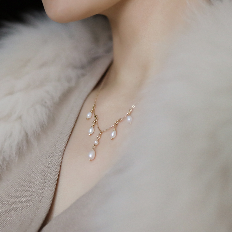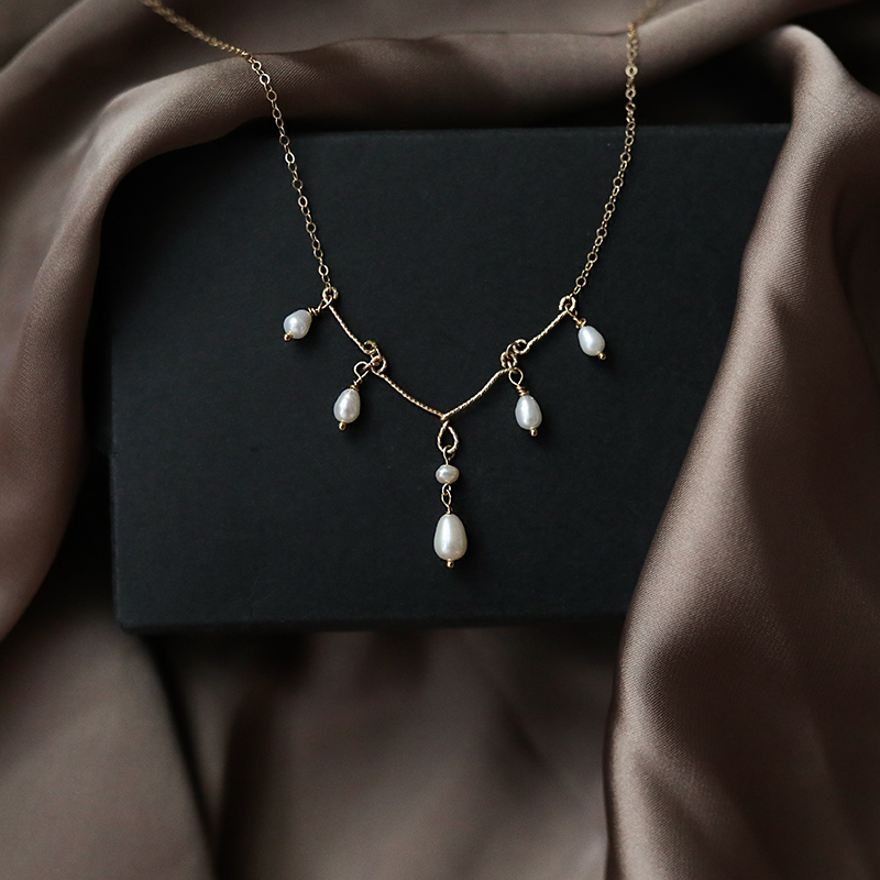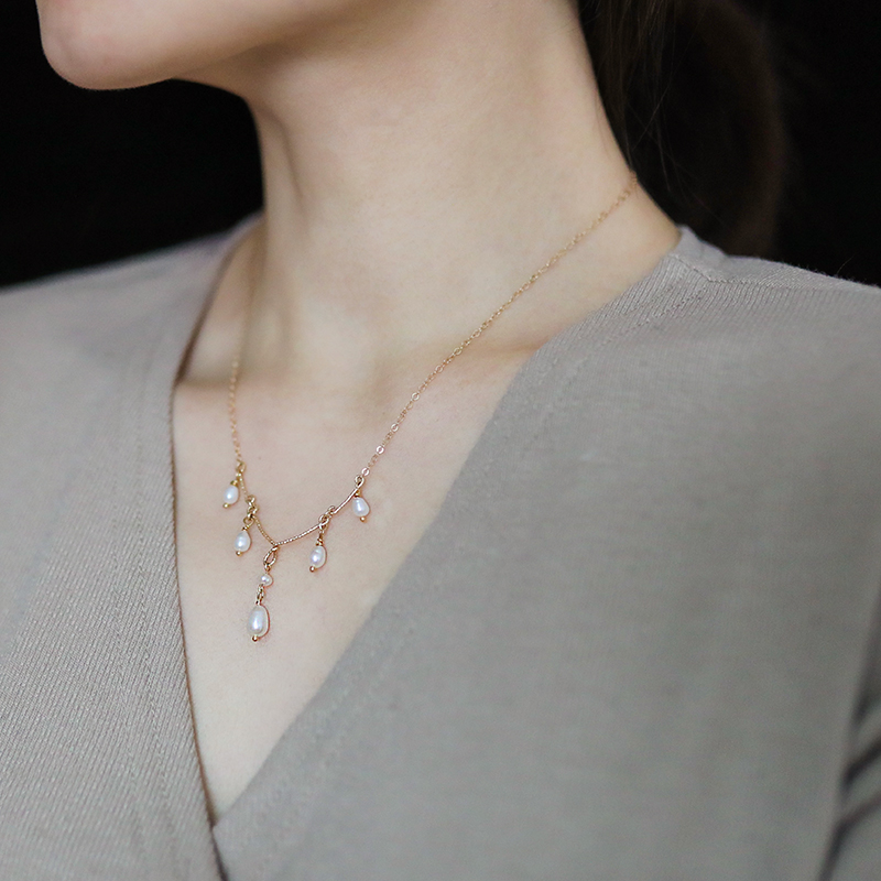 Original design of American 14k Bag gold - protected freshwater pearl necklace chain of court light luxury