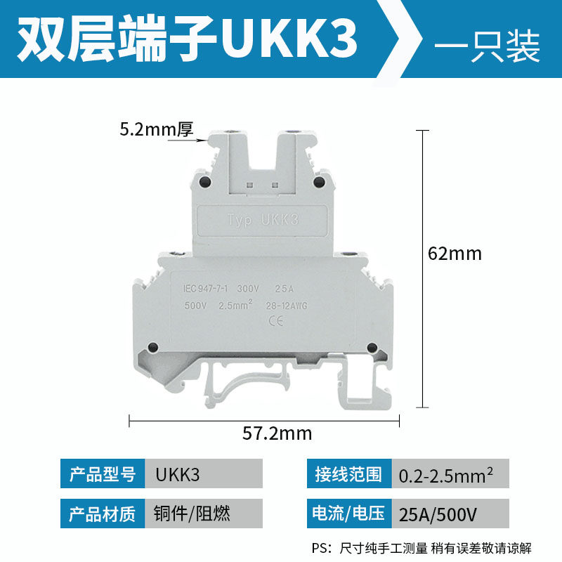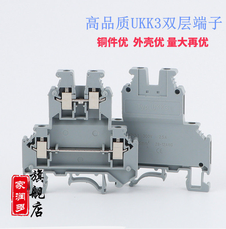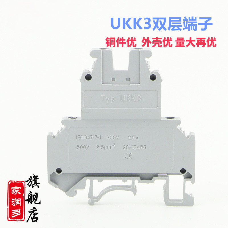 Manufacturer direct sales UKK3 rail type double layer wiring end subtable UKK3 2 5MM double in double out UKJ2 5 2-2