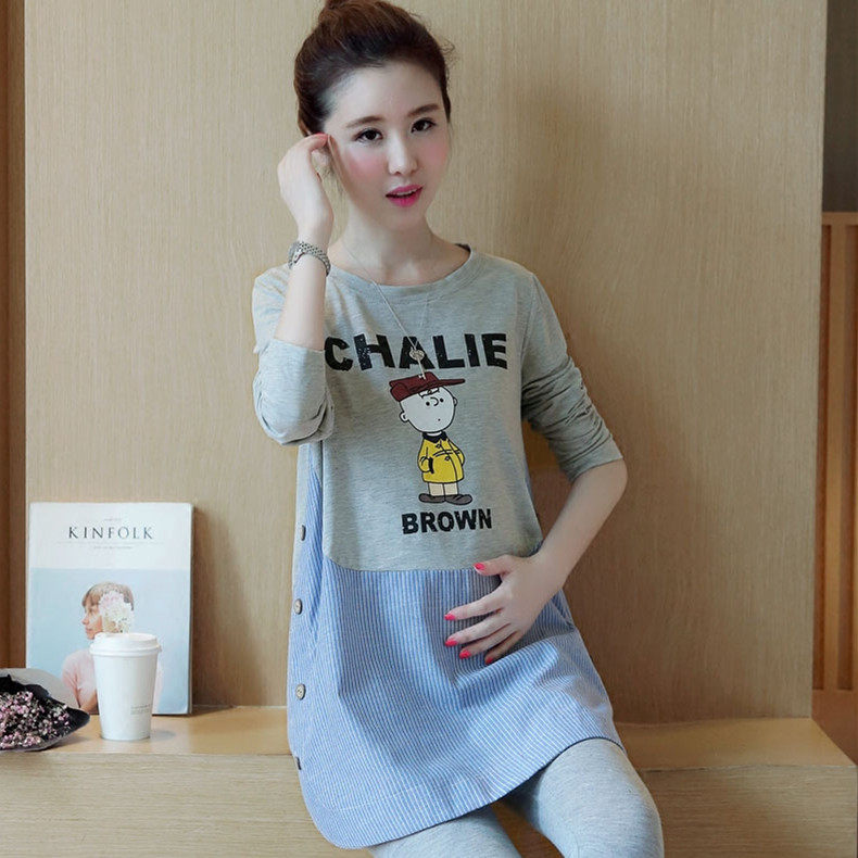 Pregnant women's spring clothing suit fashion models 2022 new two sets of spring autumn medium long blouses Long sleeves loose spring t-shirt