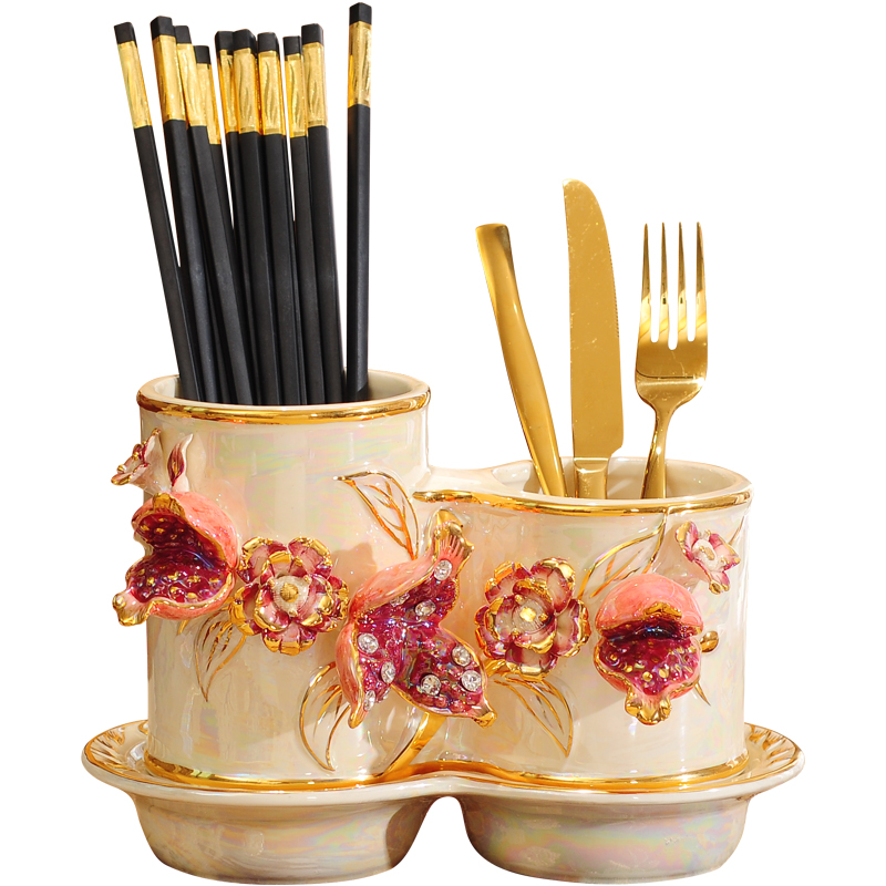 Chopstick tube Household ceramic European chopstick box Kitchen chopstick bucket spoon tableware storage drain rack Chopstick cage practical