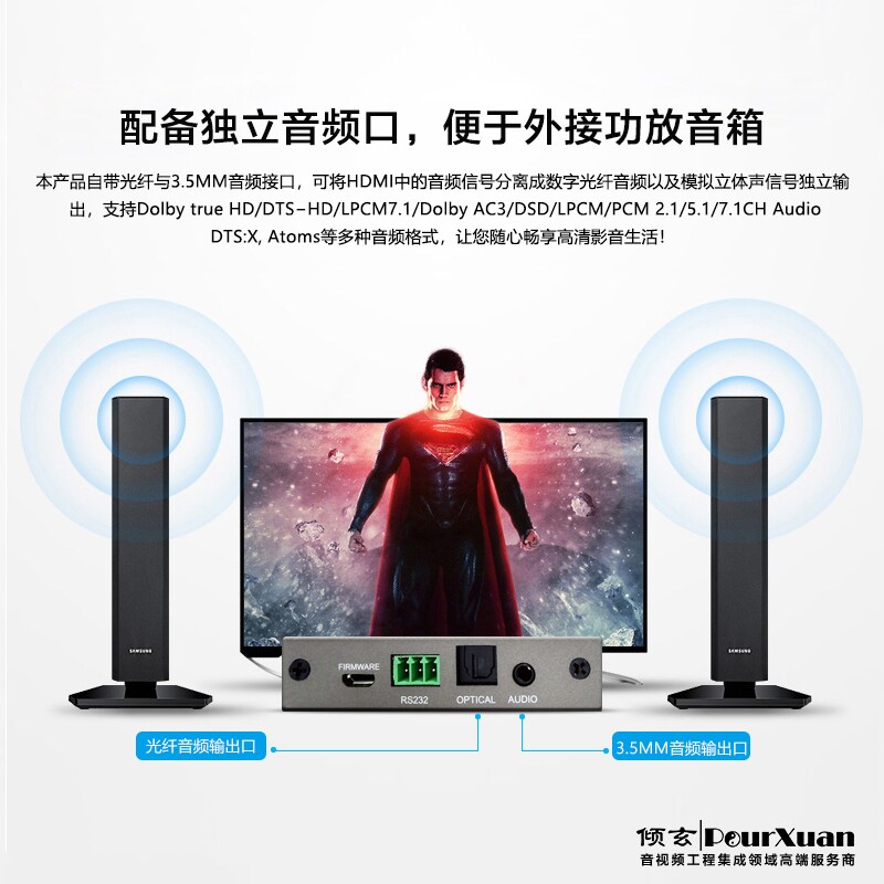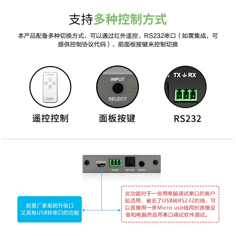 HDMI automatic multi-computer switcher 4 in 1 out with audio separator serial port control HDCP deciphering the split-screen