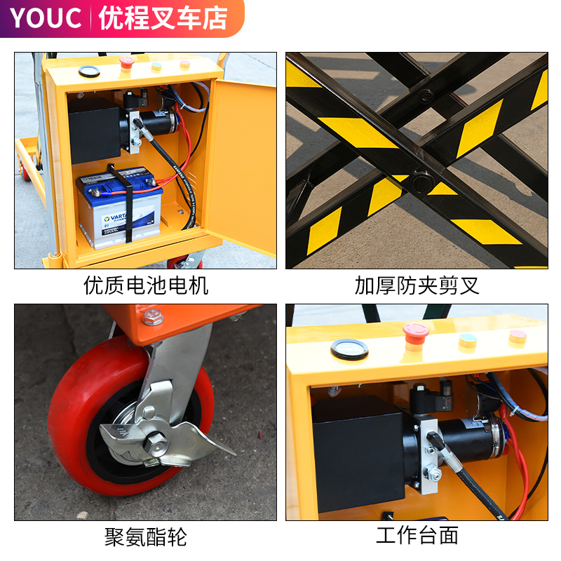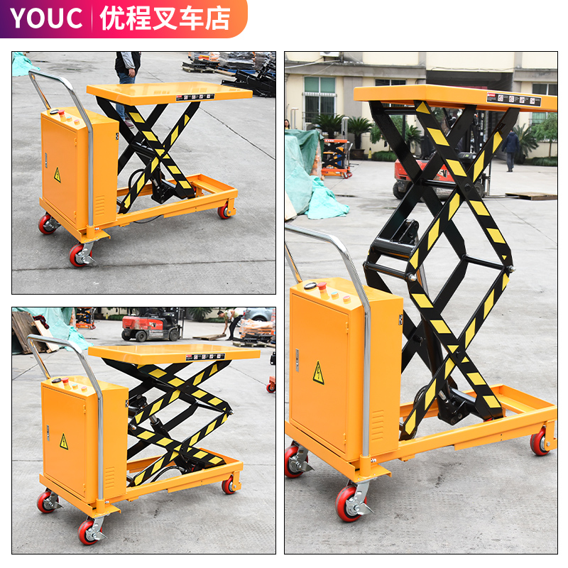 Youcheng electric hydraulic lift platform car mobile hand push lift table scissor fork lift car small electric hydraulic car