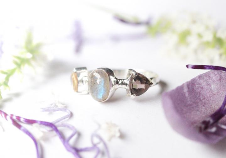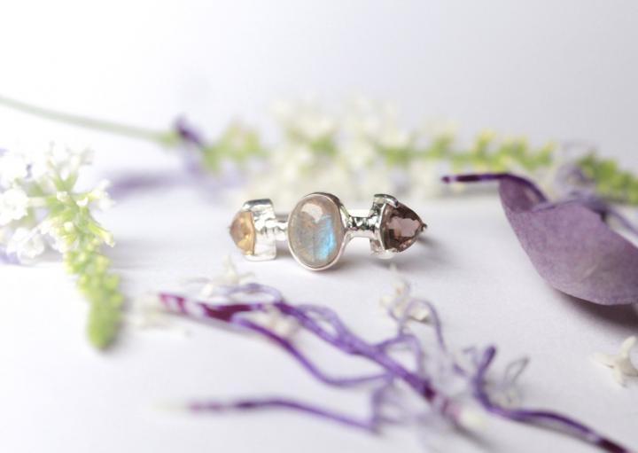 Indonesia Feldspar is handmade bohemian natural elongator smoked quartz ring custom