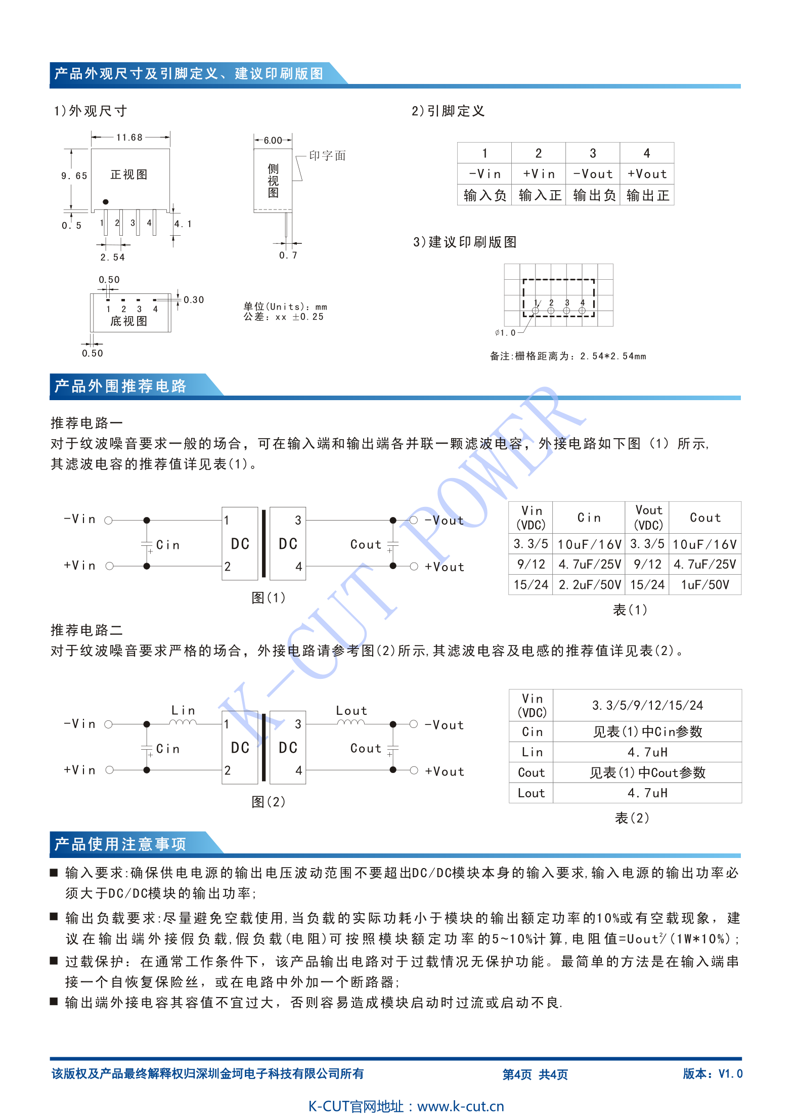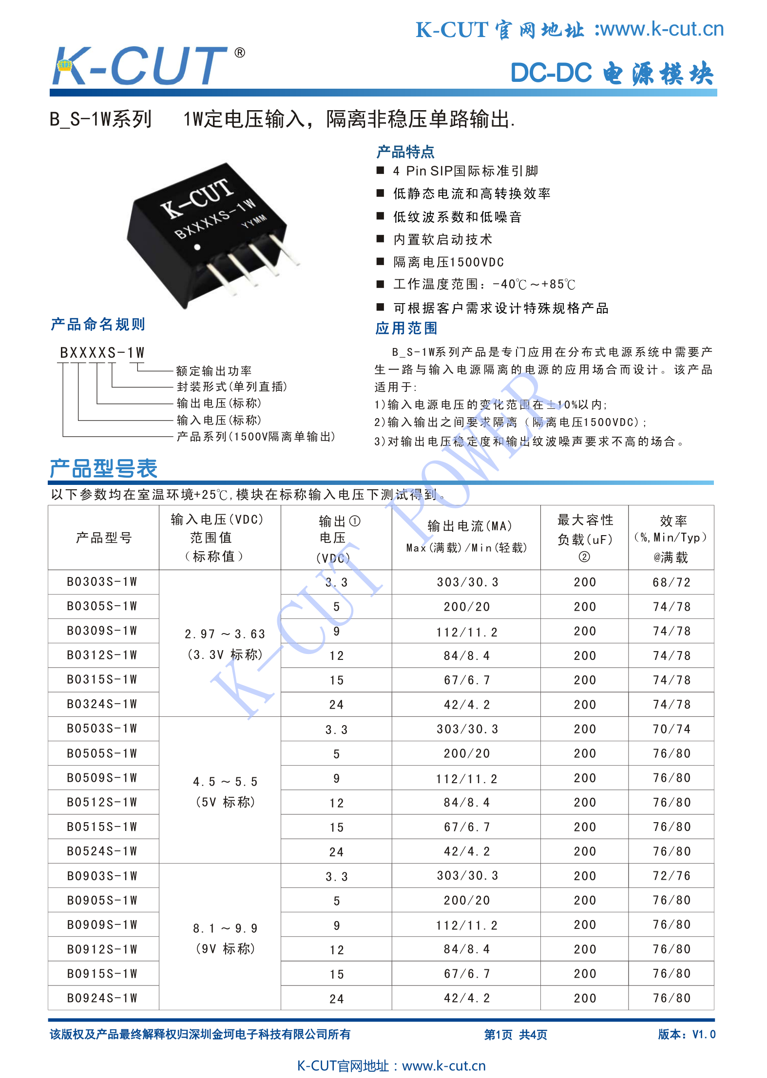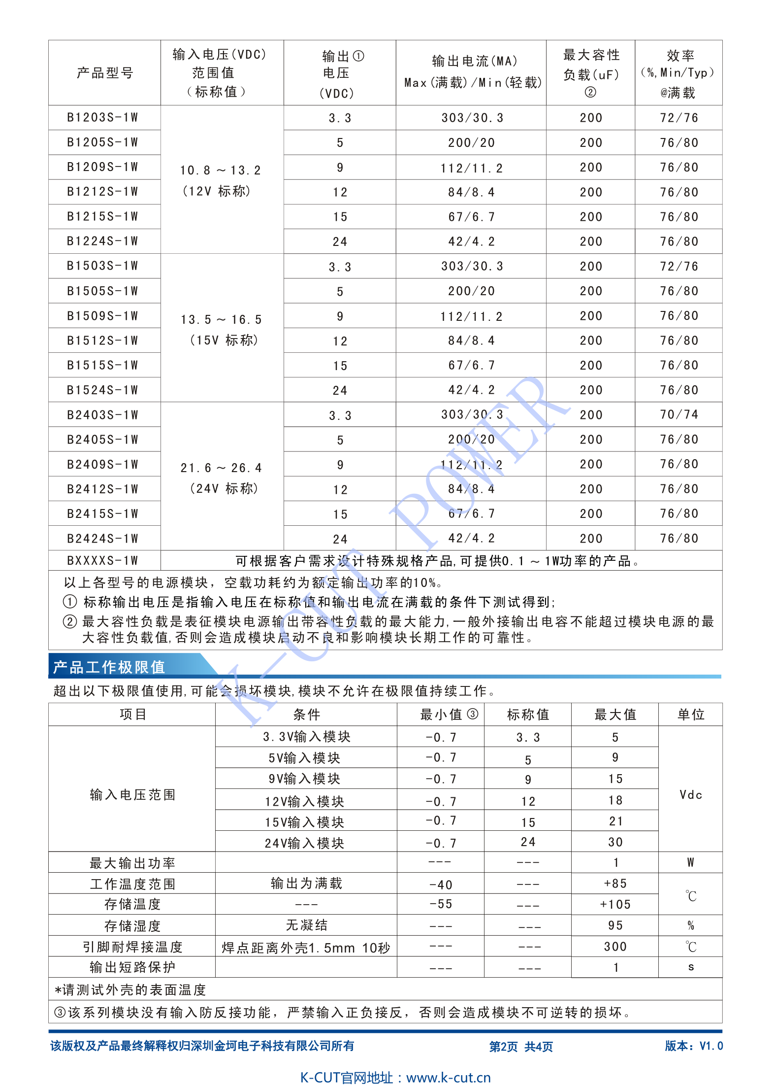 B1209S-1W B1209S-1W B1209S-1WR2 KCUT isolated power module 10 8 ~ 13 2V 2V 9V