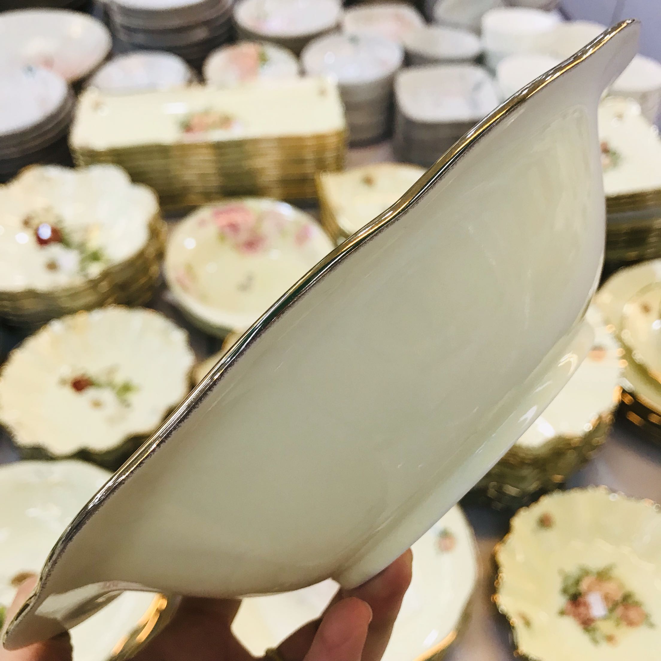 South Korea imported 13k gold edge Queen rose Queen rose curry deep dish fast food dish fish dish soup dish