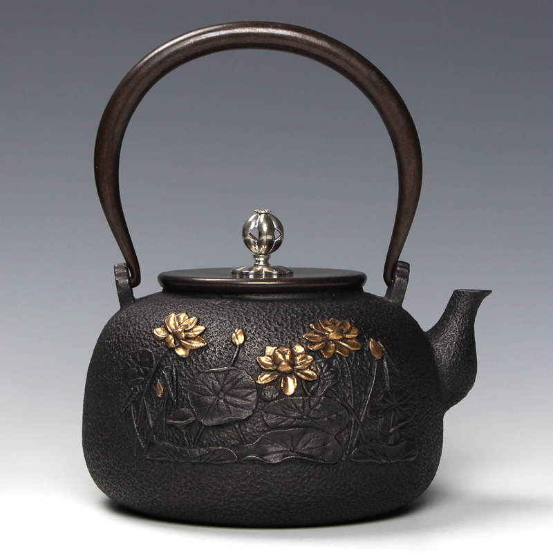God-carved iron pot uncoated kettle with gold cast iron pot black crystal furnace teapot household tea maker tea maker set
