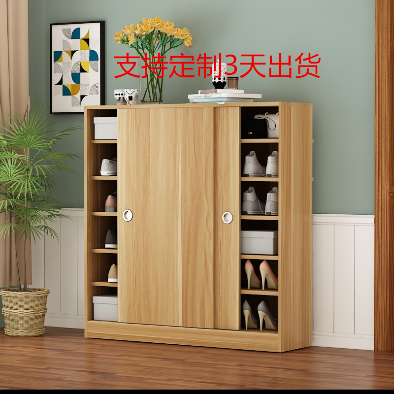 Shoe cabinet custom solid wood sliding door home door simple large storage modern storage cabinet balcony cabinet heightened custom