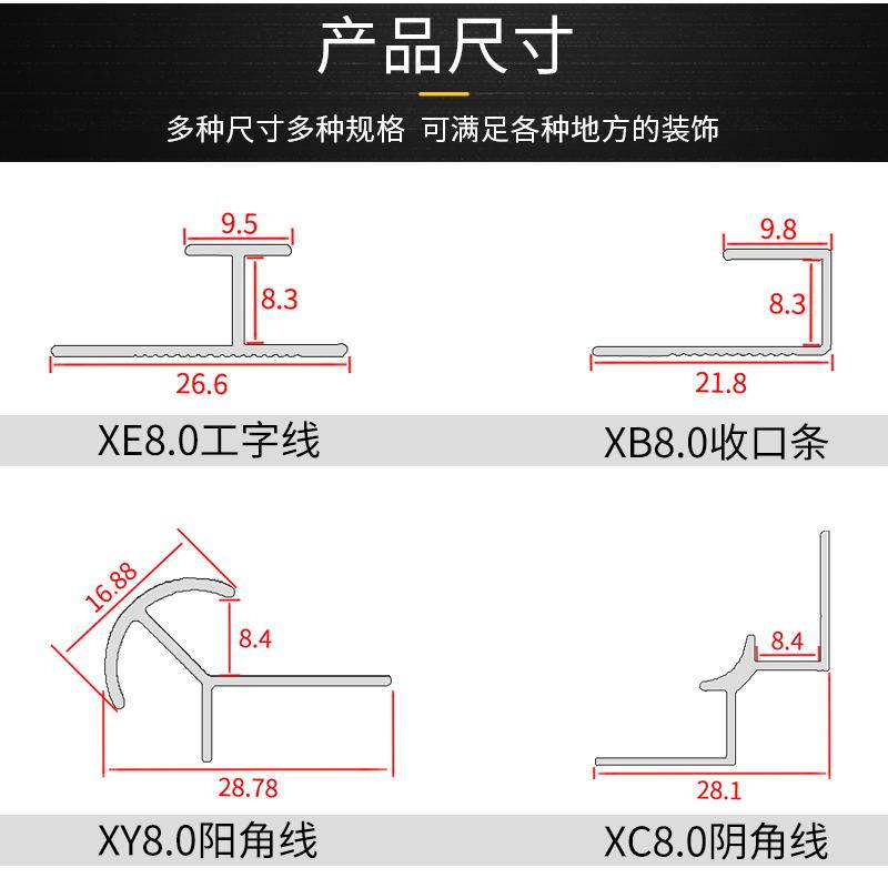 Dumb silver edge XB8 0 dumb silver I-shaped XE8 0 dumb silver yang angle XY8 0 dumb silver yin angle XC8 0 bright gold edge XB8 0 bright gold I-shaped XE8 0 bright gold yang angle XY