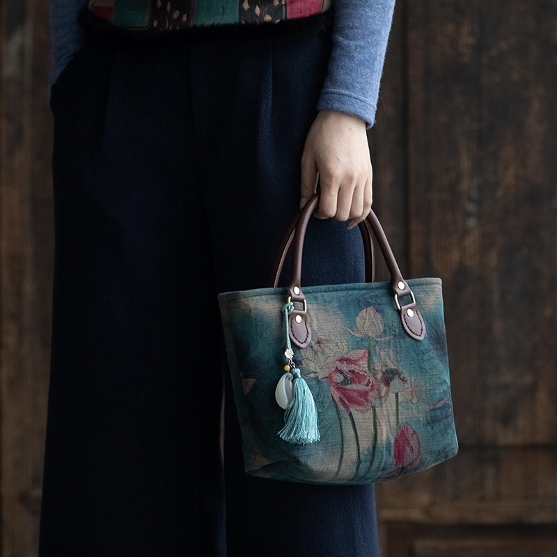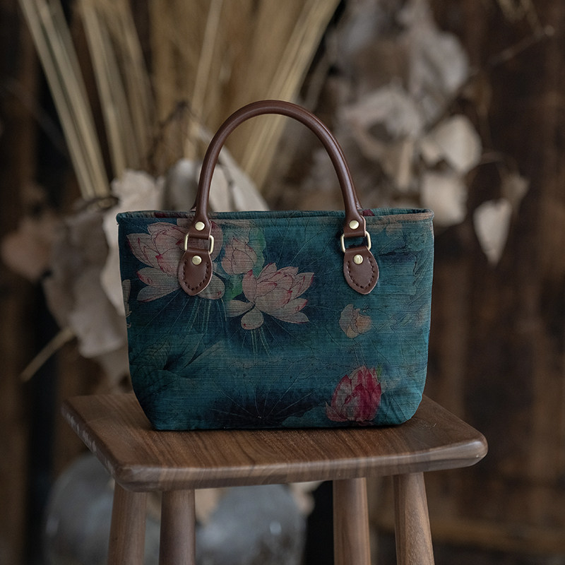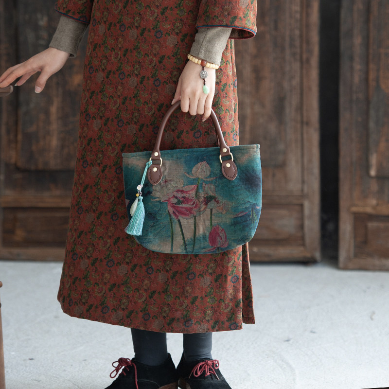 Strangeness flowers open original design Lanflap (pool moon) true silk fragrant cloud yarn handbag cheongsam matching bag