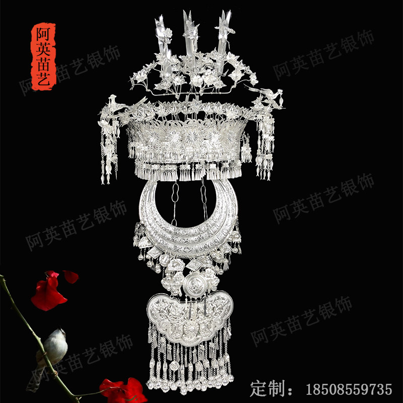 Huangping collar three-layer collar three-tier collar two-piece cow angle large-life lock headgear three-piece set with large bird headdress three-piece set with horn headdress two-piece set