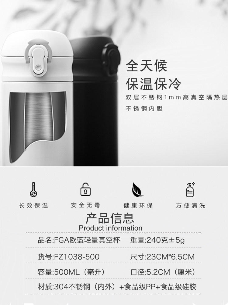 Fuguang 304 stainless steel insulated cup male and female portable student Jane about bounce cover water mug bottle large capacity 500ml
