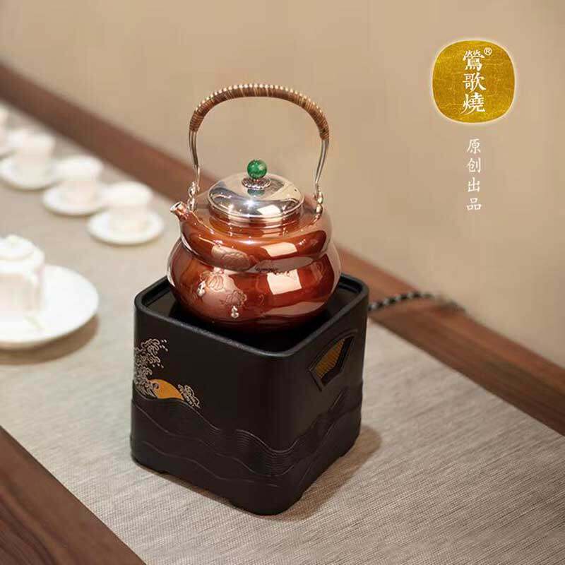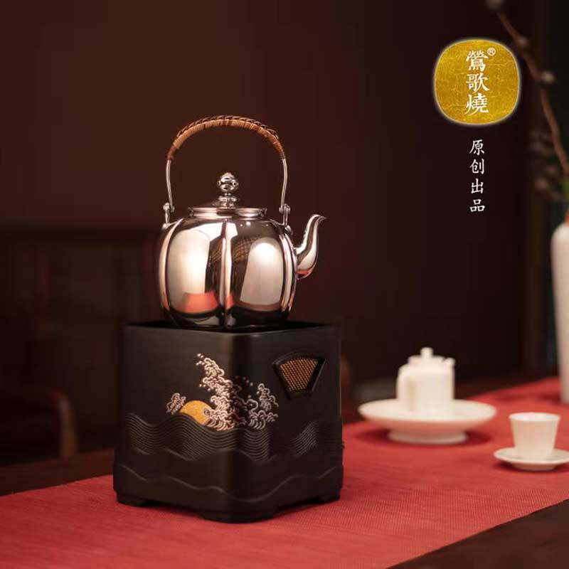 Taiwanese Orioles Songs Burning Black Crystal Stove Home Small Ultra Silent Cooking Tea Stove Silver Jug Iron Pot Pottery Pot Tea Making Tea