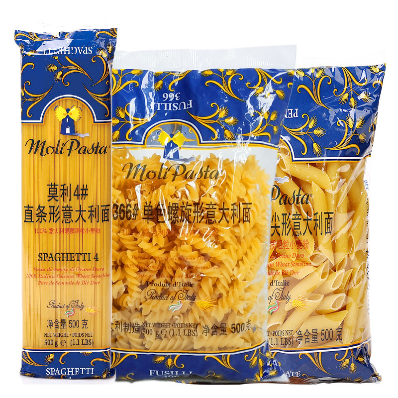 Molly 4#直条形义大利面500g* 3 sacks (15 people) Molly two tips 500g * 3 sacks (15 people) Molly small bends with Italian face 500g * 3 bags