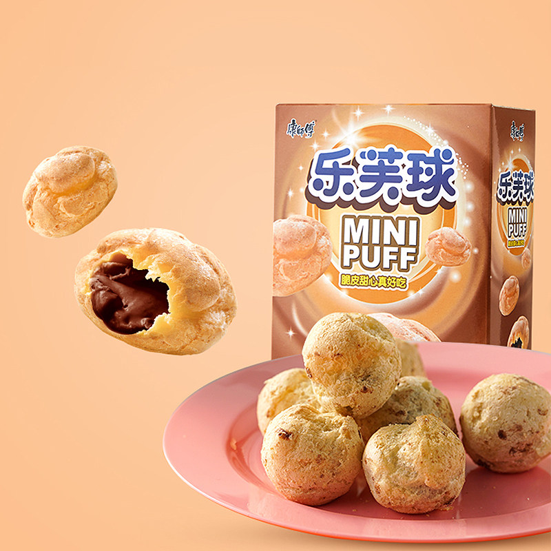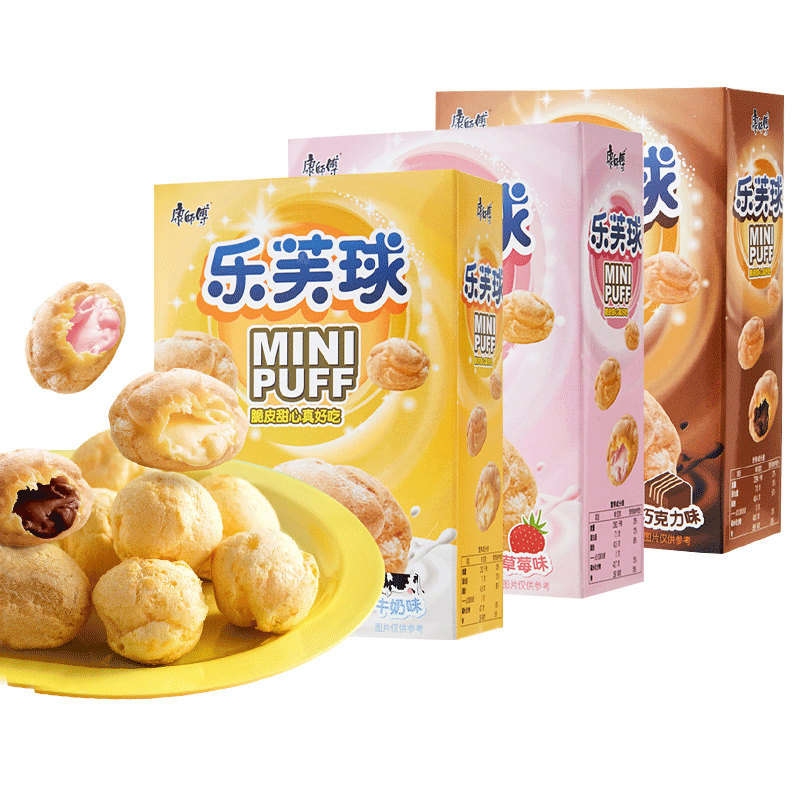 Master Kong Lovelace ball 60g * 3 boxes sandwich puffs heart filling cookies Small dim sum leisure cookies