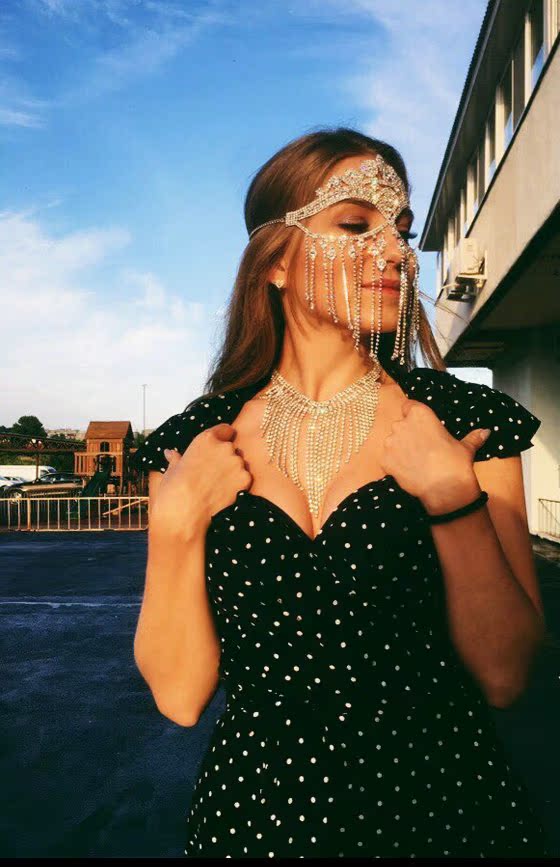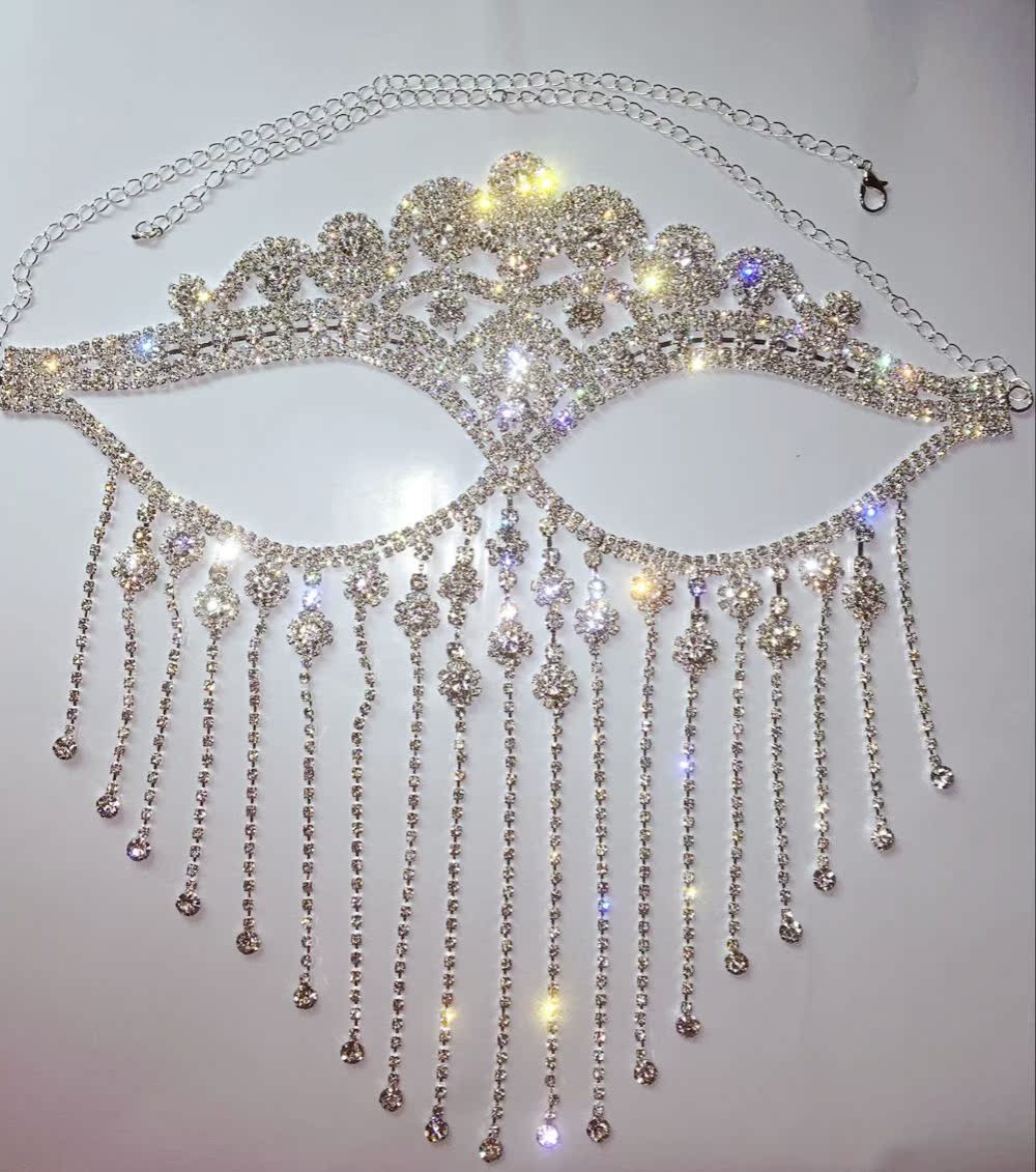 Rhinestone mask Full diamond tassel mask Female modeling Stage Nightclub Dance Bar Catwalk Nightclub jewelry
