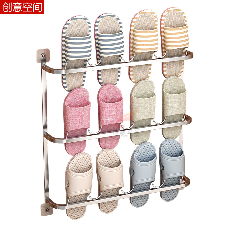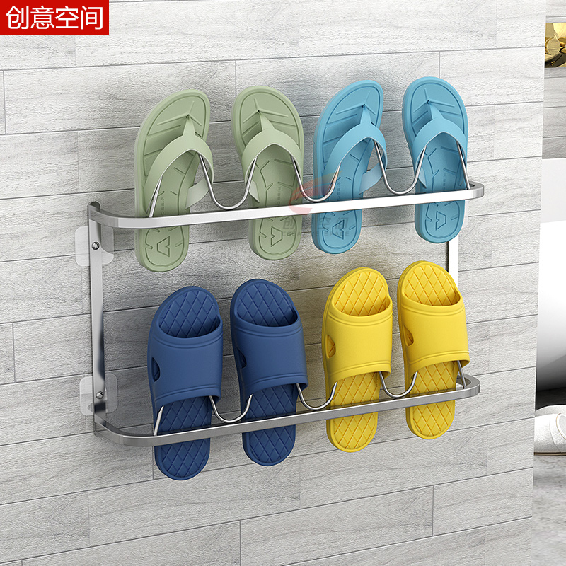 Bathroom slipper rack Wall-mounted non-perforated household powder room door rear shelf Simple shoe storage artifact