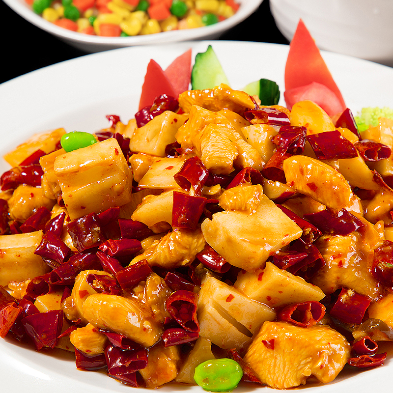 Chicken, lotus root, chili edamame, edible blended oil, vinegar, ginger, onion, garlic, soy sauce, sugar, seasoning oil, spices, etc.