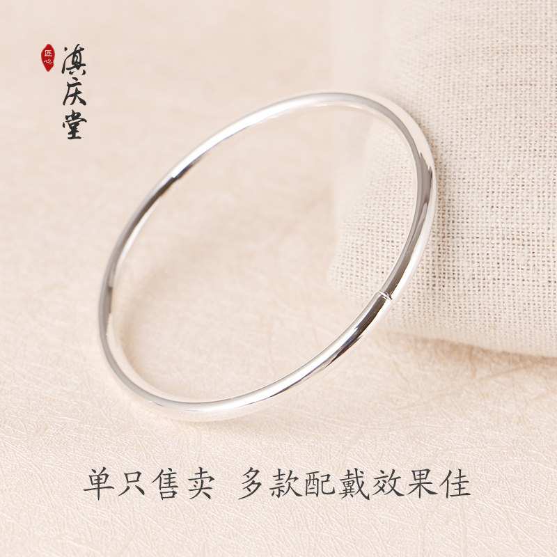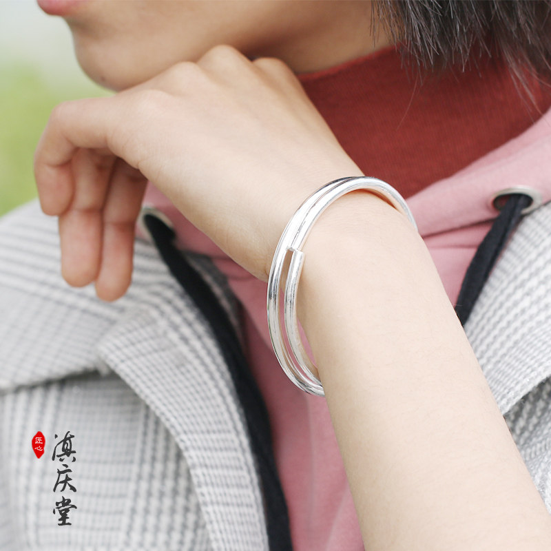 Silver bracelet female 999 sterling silver simple thin ring section solid snowflake opening ancient glossy silver bracelet simple section