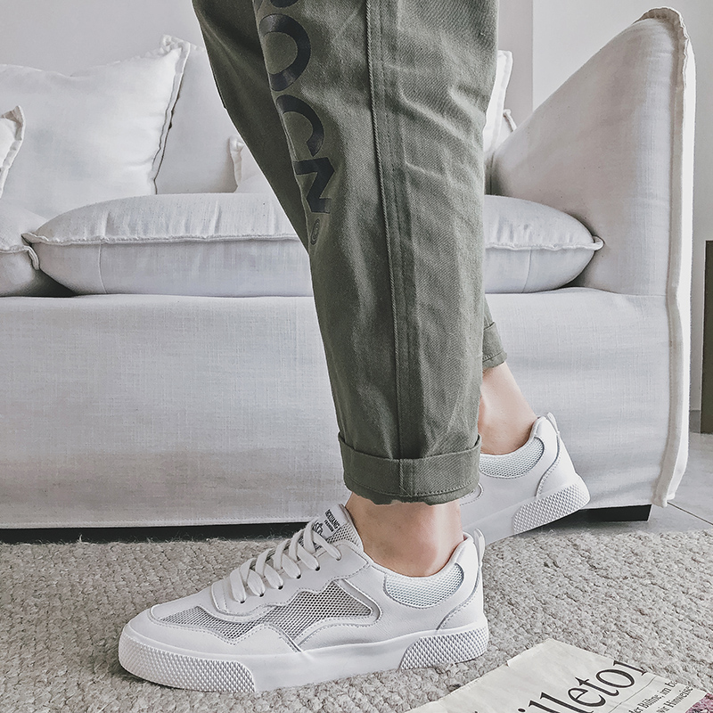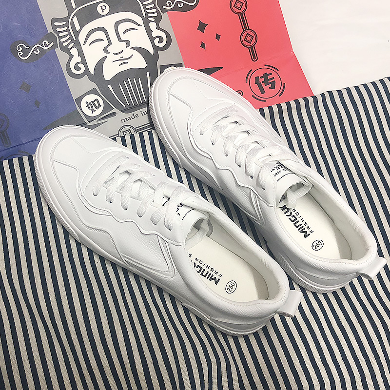 Autumn new breathable wild leather simple ins small white shoes men's Korean version of the trend flat white casual sneakers