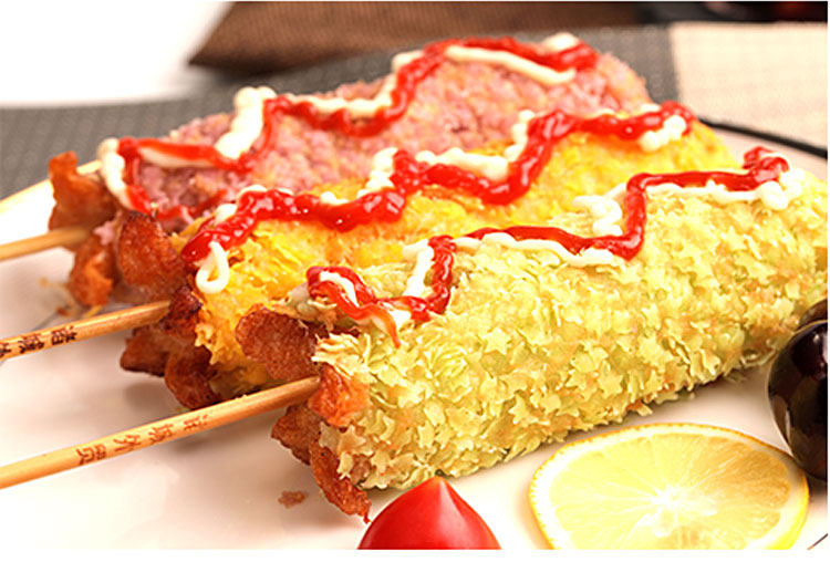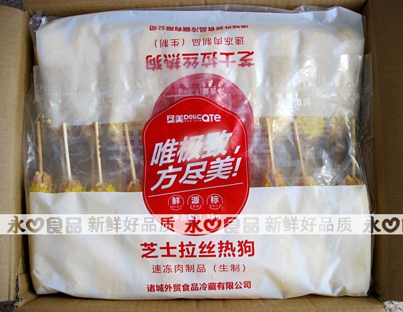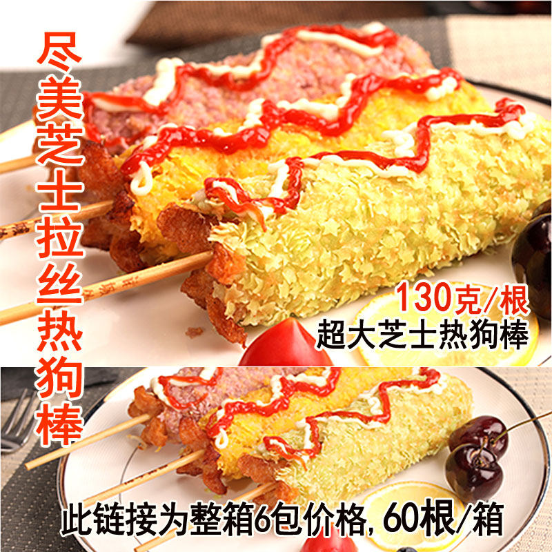 Perfect cheese brushed hot dog sticks whole box of 60 deep-fried semi-finished net red cheese drawn hot dog sticks for commercial use
