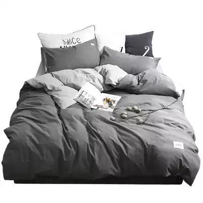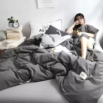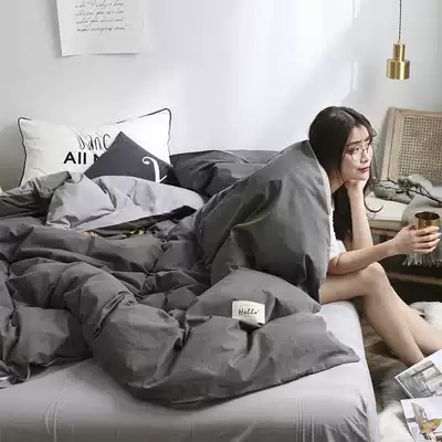 Nordic water washing cotton four-piece set of unprinted Japanese quilt cover cotton plain color sheet people students pure cotton naked three-piece set