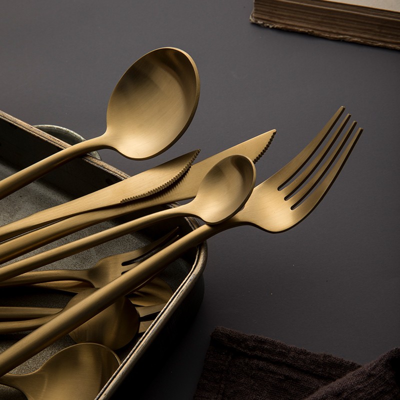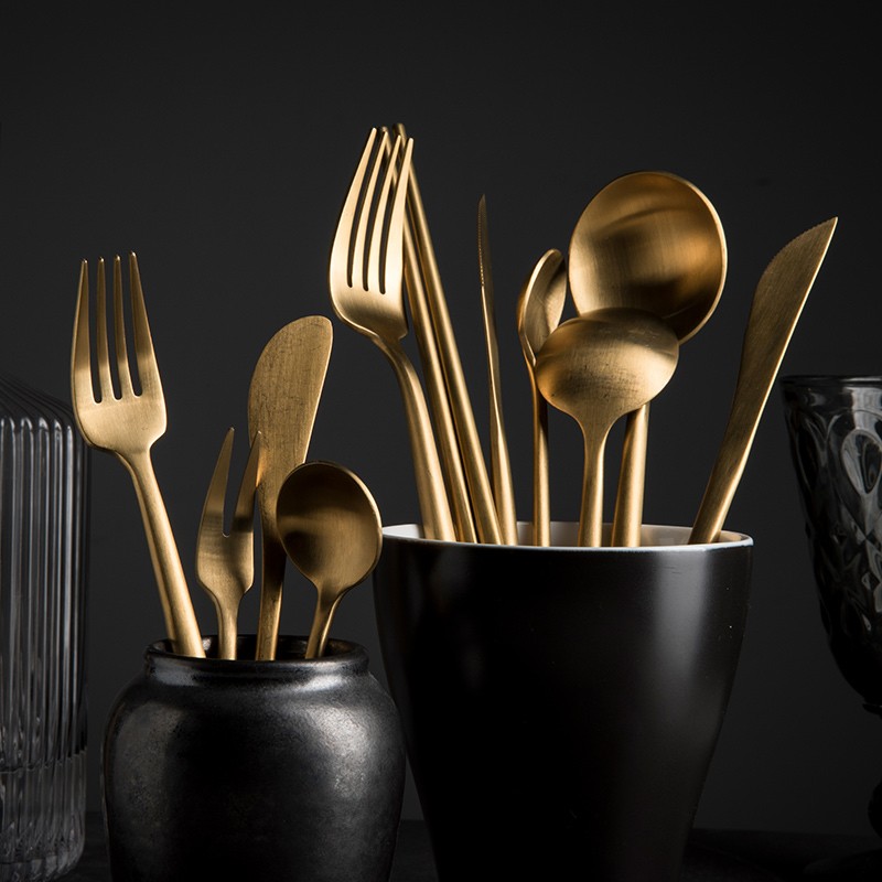 Steak knife, fork and spoon set Nordic ins style advanced western tableware dessert cake special golden three-piece set