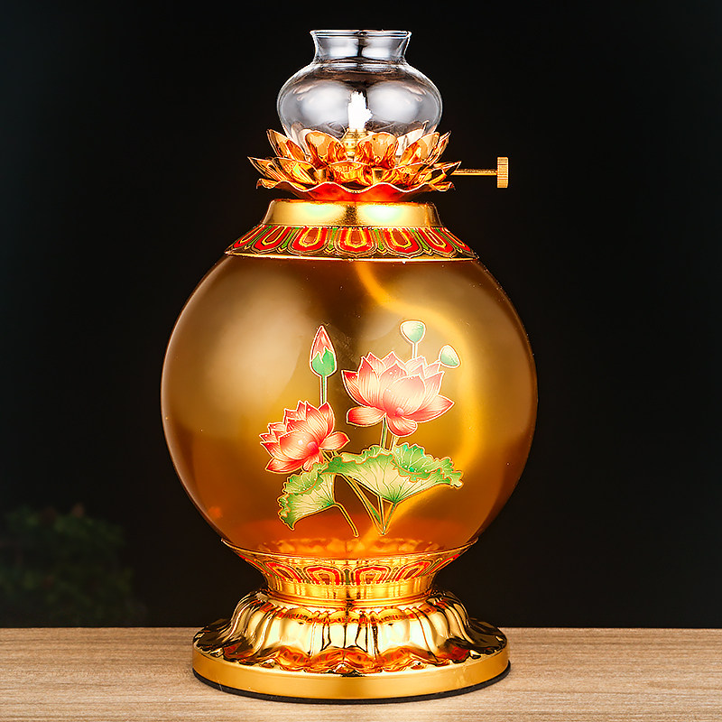 Amber Baobao Prospectus Lotus butter lamp candle holder Insect-Proof Windproof Liquid oil lamp Changming light for the Buddha's lamp home