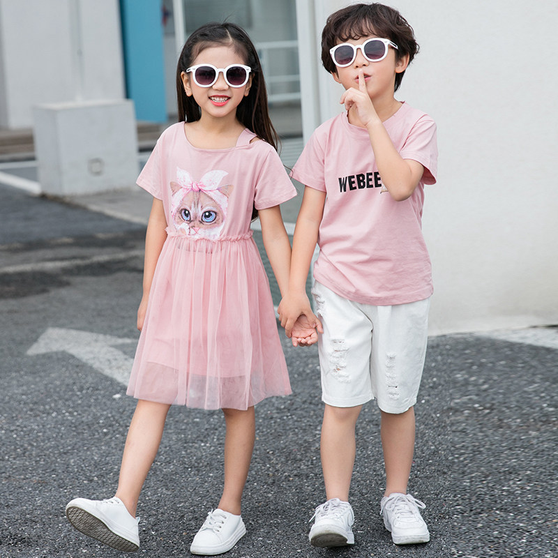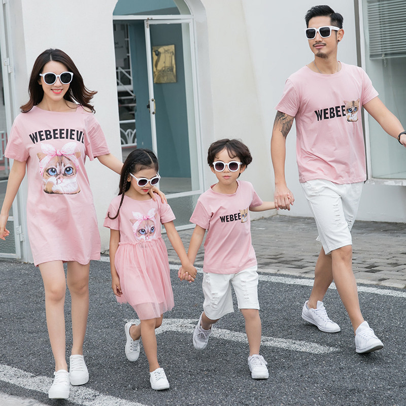 Family - child dress summer beach with three - piece cartoon cotton T - shirt short sleeve mother and daughter dress tide