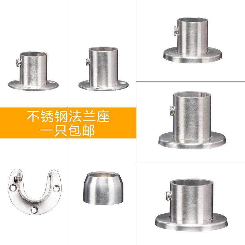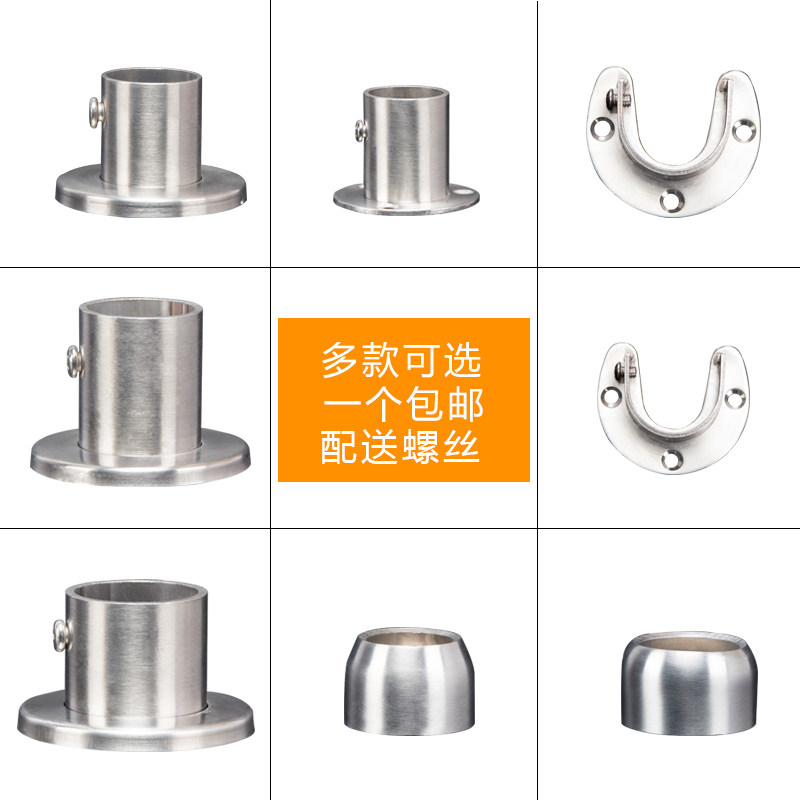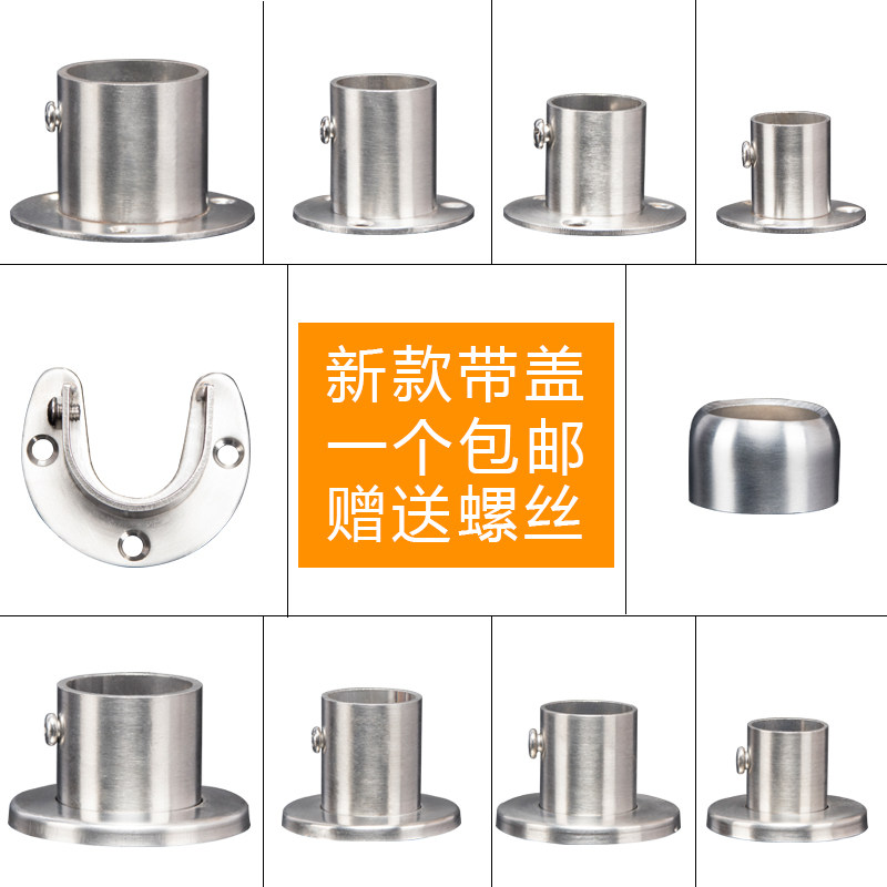 Wardrobe hanging rod fixing accessories Cabinet hardware white steel pipe fixing Stainless steel flange seat clothing trust