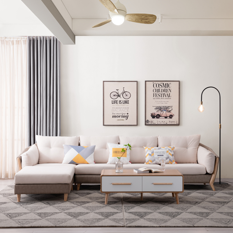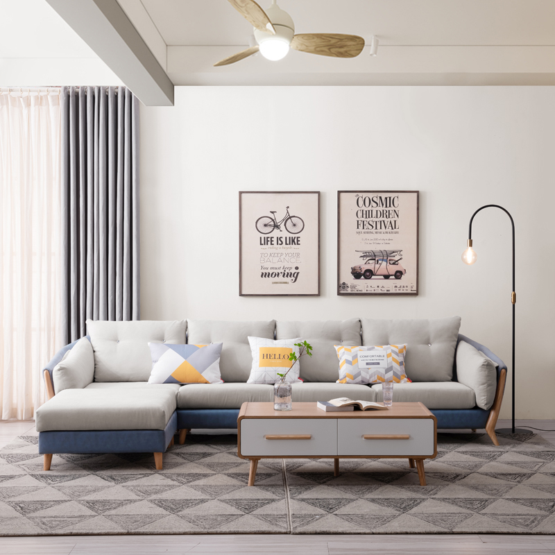 Nordic fabric sofa combination solid wood corner net red removable and washable simple modern size apartment ash wood sofa