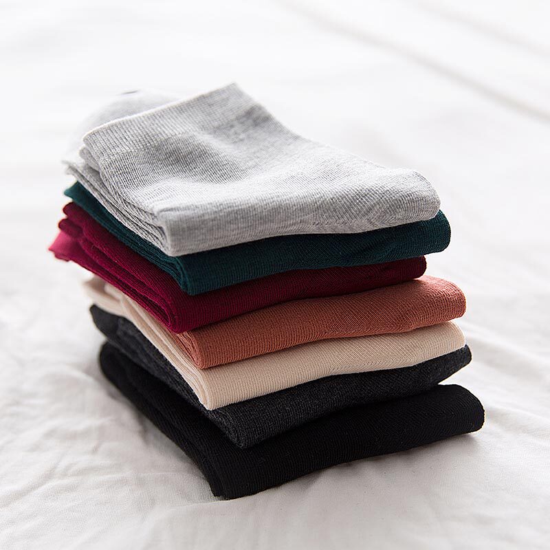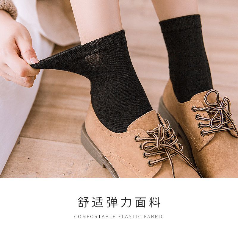 Black socks Women's tube socks spring and autumn stockings Women's solid color cotton socks Student sports Korean version of college style