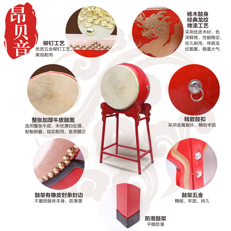 18 inch dragon drum + vertical drum stand 20 inch dragon drum + vertical drum stand 24 inch dragon drum + vertical drum stand 1 meter dragon drum + vertical drum stand 1.2 meters dragon drum + vertical drum stand 1.5 meters dragon drum + vertical drum stand 1.8 meters dragon drum + vertical drum rack 2 meters dragon drum + vertical drum stand drum surface can be customized according to customer needs