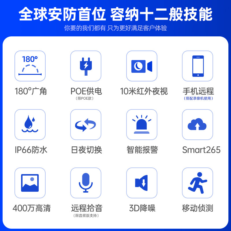 180° wide angle poe power outdoor rain proof support recording 180° wide angle poe power supply indoor recording support