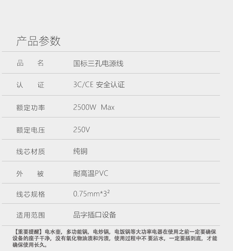 Desktop Computer Power Cord Triple Hole Display Printer Projector Host Electric Rice Cooker Wire Plug Triple-Taobao