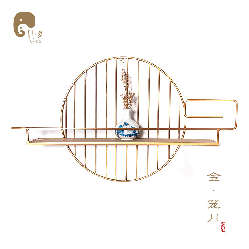 New Chinese style sample house display center Decorative rack on the wall Zen hanging background Simple modern nail shop shelves Nail polish rack