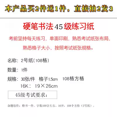 108 lattice lattice paper practice paper 20 years Jiangsu Province 45 level examination examination examination hard pen calligraphy competition special paper work paper Primary school students lattice paper pen practice paper 16 open 30 sheets