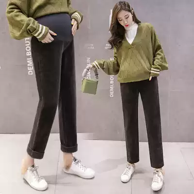 Maternity pants Autumn and winter wear velvet thickened base corduroy fashion autumn pants wide leg pants Autumn and winter clothes