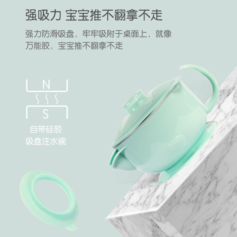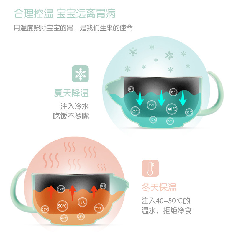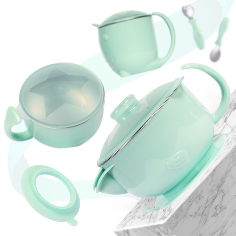 Opei Children Cutlery Set Group Infant Bowls Spoon Suit Vice Food Bowl Stainless Steel Anti-Fall Baby Water Injection Insulation Bowl