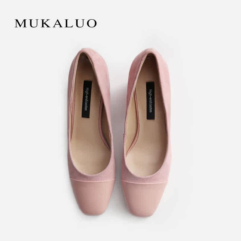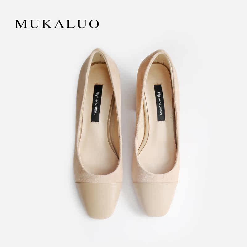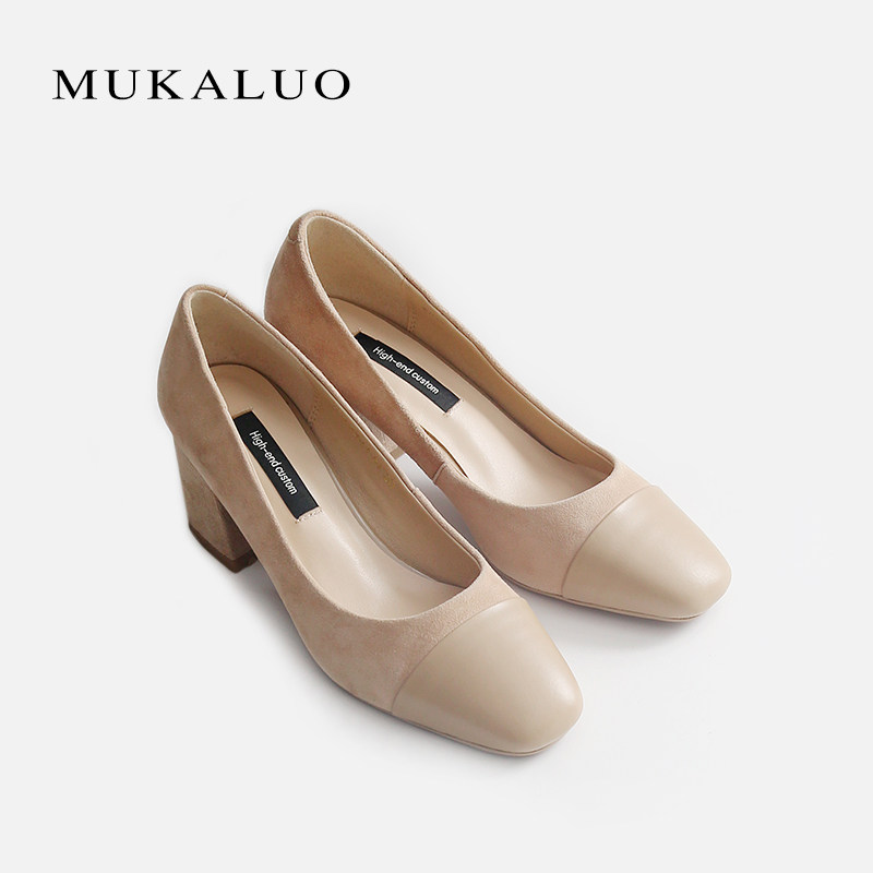 Wood Carlo Single Shoe Woman 2020 Spring New Light Mouth Coarse Heel Square Head Fashion Almond color genuine leather Han version 100 hitch heels